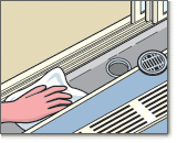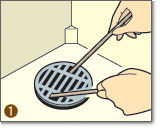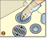 排水口は、髪の毛などのゴミをトラップにためて排水管に流さないしくみ。ここにゴミがたまると水の流れを妨げ、悪臭 の原因にもなるので、排水口の蓋を外して中を掃除します。悪臭があるときは、市販のパイプ用洗剤や漂白剤を流し込みます。