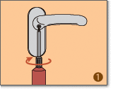 固いものがぶつかったり大きな力が加わると、ひび割れを起こすことがあります。そんなときは新しいレバーハンドルに付け替えましょう。まずハンドルの付け根のネジを外して抜き取り、新しいハンドルを差し込みます。このときどちらか一方の側の付け根のネジを外せば両側のハンドルとも引き抜くことができます。あとは逆の手順で新しいハンドルを取り付けます。 |