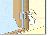ドア(木製)につかないよう注意しながら 潤滑剤を差す |