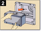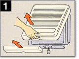 熱交換器の上下を持ち、手前に引いて取り出します。 |