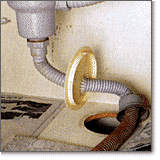 排水口に続く蛇腹状の排水ホースは、食べ物のクズや油脂などの汚れがたまりやすいところです。