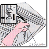 コネクタカバー固定用ネジをゆるめてコネクタカバー内のコネクタのツメを押しながら引き抜き ます |