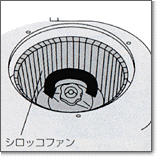 中央のツマミを「ユルム」の方向に回し、シロッコファン本体を軽く押さえながらはずします |