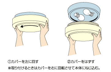 カバーのはずし方は照明器具によって異なります。