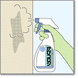 - 壁面のカビやコケにカビ取り剤をスプレーします。