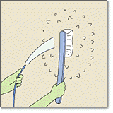 - 2~3分経ってから、やわらかいブラシやスポンジなどで