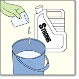 洗浄剤は10~20倍に薄めて使う。ガンコなカビの 場合は少し濃いめにする |