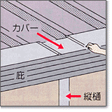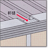 - 軒樋の落とし口付近の軒カバーははずれるようになっています。