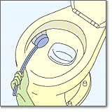 1日1回、便器の内側を水を流しながらブラシでこすり洗いしておきます。水が出てくる穴の周囲、水たまりのふちの部分、そして水たまりの底などはとくに汚れがつきやすいところです。多少念入りにこすりましょう。同様に週に1度、トイレ用中性洗剤をつけてこすっておけば、汚れがこびりつくことはまずありません。