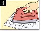 へこんだところにタオルを当て、お湯を少しかけて染み込ませ、上からアイロンをかけて蒸気を当てます |