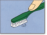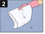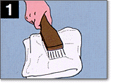 汚れの部分に固くしぼったタオルなどを乗せ、 上からブラシでたたきます。 |