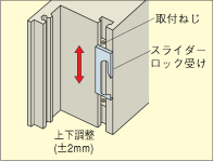 サッシが窓枠とぶつかったり、すき間が開いているときは、プラスドライバーで戸先を調整してください。 |
