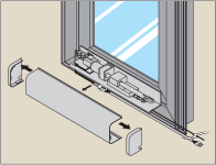 オペレーターカバー材の両サイドにあるキャップを外し、オペレーターカバー材を取り外します。 |