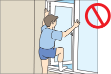 窓や手すり、窓額縁、出窓のカウンターに乗らないでください。