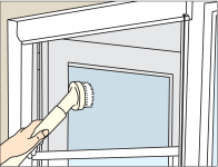 ロール網戸のネットはとても薄いので、普段、砂やホコリは掃除機で軽く吸い取ります。 汚れが目立つときは、柔らかな素材のブラシでキズをつけないようにやさしく扱ってください。 |