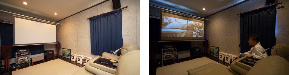 「以前は、夜間にボリュームを上げると、妻や娘からクレームの嵐でした」それが、壁に遮音ボードを張り、防音ドアに変えたところ、大音量でも室外にはほとんどもれないように。配線も、天井裏や壁内を通すことで、室内はすっきり。お掃除もラクラクです。