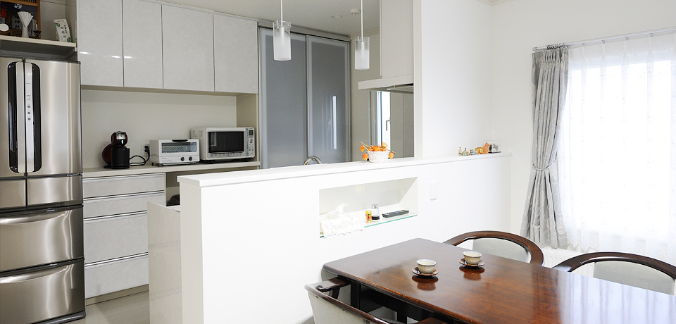 「夢だった小上がりは、テーブルをのばして座卓とつなげれば、大勢で食事もできます。先日の総勢11人のいとこ会も、大盛り上がりでした」(奥様)